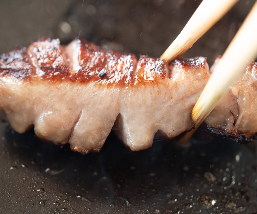 最も柔らかい霜降り部位を厳選した「上タン塩」。